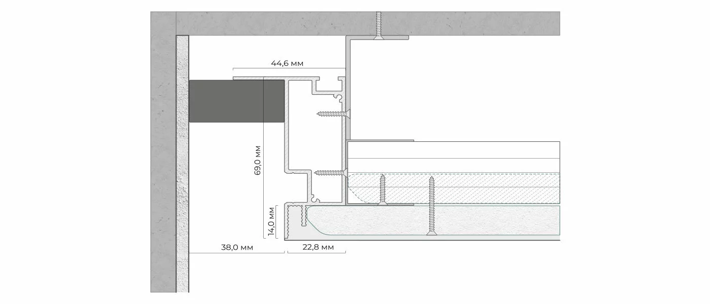 - Не нужно сверлить стены – профиль крепится к потолку и вписан в каркас потолка. Что значительно увеличивает надежность крепления, а также профиль становиться несущим. (Профиль становиться несущим).