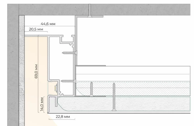 «Теневой» профиль — инновационная разработка, ставшая прорывом в сфере дизайна потолков. Визуальная особенность этой конструкции заключается в образовании теневой зоны шириной от 20 до 40 мм вдоль стены. Вы получаете ровную линию потолка, которая оригинально выглядит в любое время суток. Теневой профиль создаёт ощущение парящего в воздухе, «левитирующего» потолка.