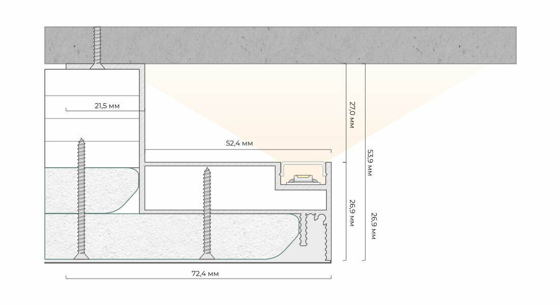 Наличие камеры для отвода тепла светодиодной ленты, что позволит ей служить дольше
