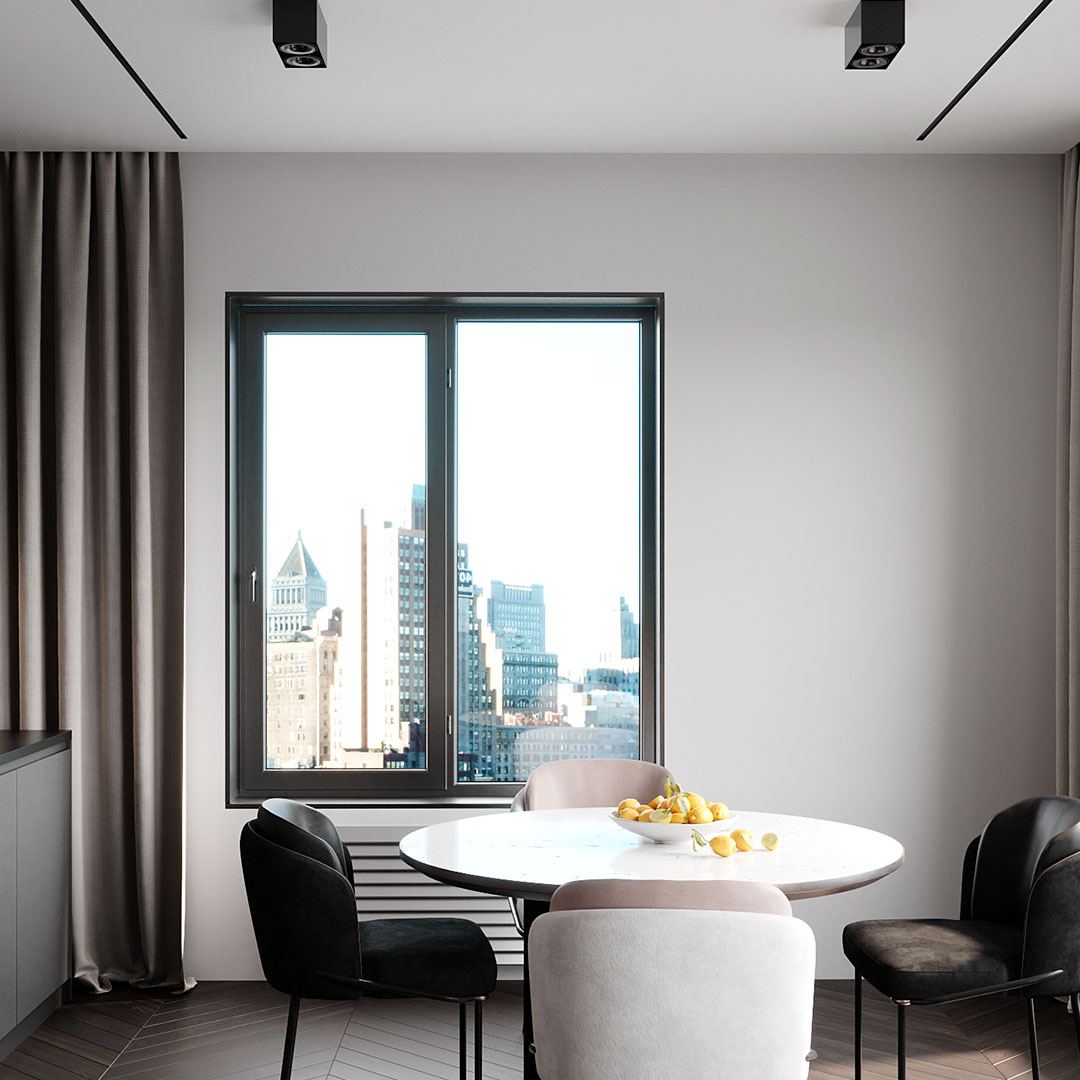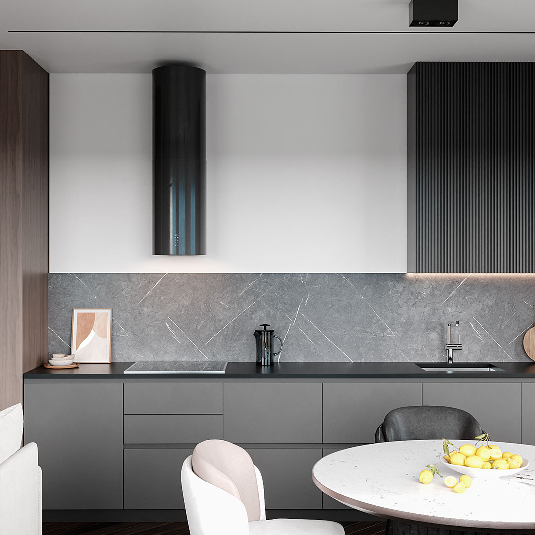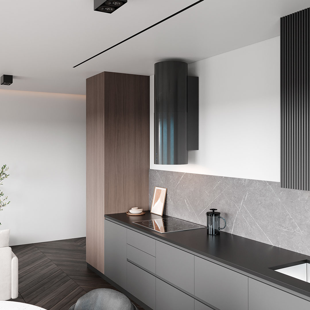 Вентиляция скрыта в потолке аккуратной линией шириной 23 мм.