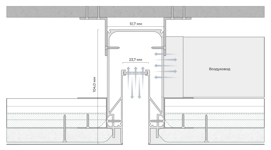 Вентиляционный профиль ВП 23 — идеальное решение для создания линейной вентиляции в потолке из гипсокартона. Стильно впишется в любой интерьер. Может быть скрыта в трековой системе МТ 23.